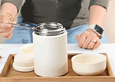 步驟三:享受美味!燜燒杯自帶304不鏽鋼摺疊勺,你可以直接就着燜燒杯喫,或是倒進自己的杯子裏慢慢喫。