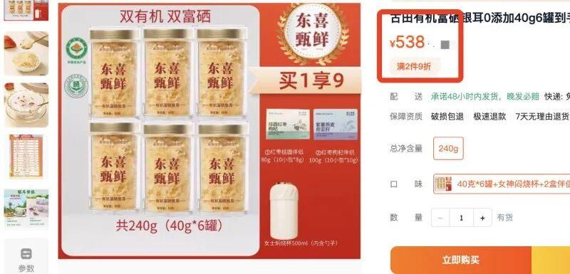 這個價格很震撼了,認證的綠色有機銀耳整整240g,能喫大約120次,還有無農藥的檢測報告,某寶要賣538元,我們整整優惠了400塊!