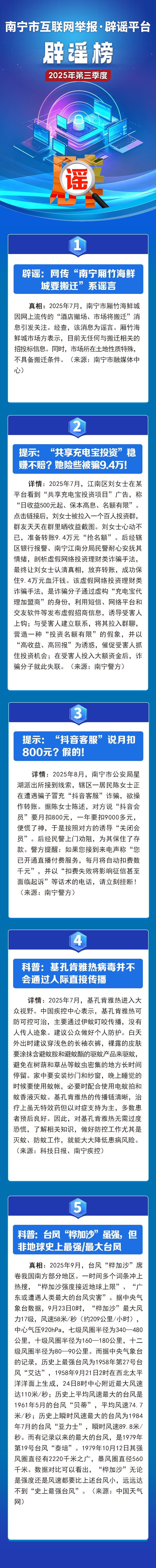 南寧市互聯網舉報·闢謠平臺2025年第三季度闢謠榜發佈