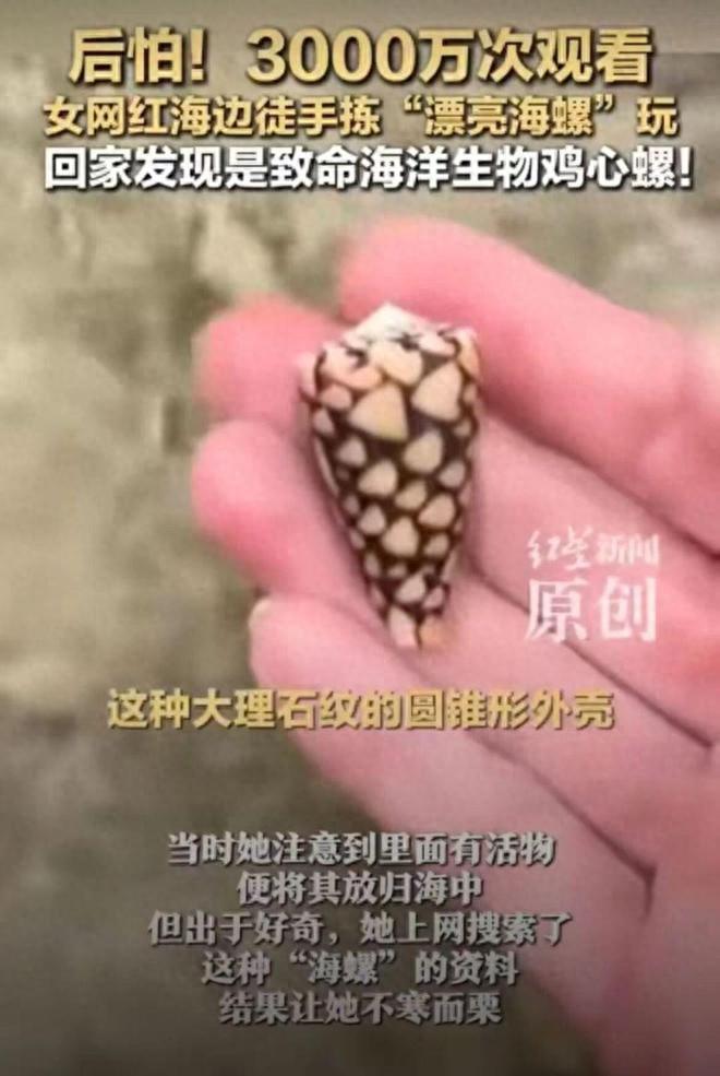 最近,一則網紅博主發佈的視頻在社交平臺引發關注。博主稱自己在海灘徒手撿"漂亮海螺"玩,事後才發現撿的竟是致命海洋生物——雞心螺。該視頻在發佈後迅速發酵,目前已獲得超過 3000 萬次觀看。
