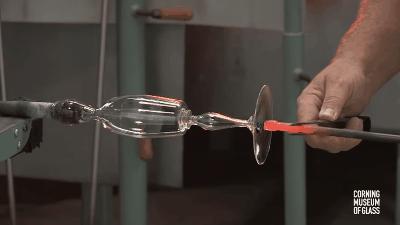 製作高腳杯時,也要在杯底這麼來一下丨youtube/Corning Museum of Glass