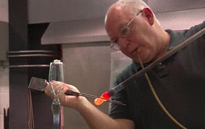 自己吹氣和整形玻璃的師傅丨youtube/Corning Museum of Glass
