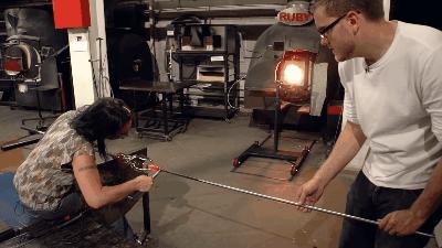 大家肯定知道“吹玻璃”這種傳統工藝。簡單來說,就是拿一根長長的中空細管子,一頭有人吹氣,另一頭黏上一團熔化的玻璃,對慢慢吹脹的玻璃進行形狀上的調整,跟我們小時候吹的泡泡膠有點像。