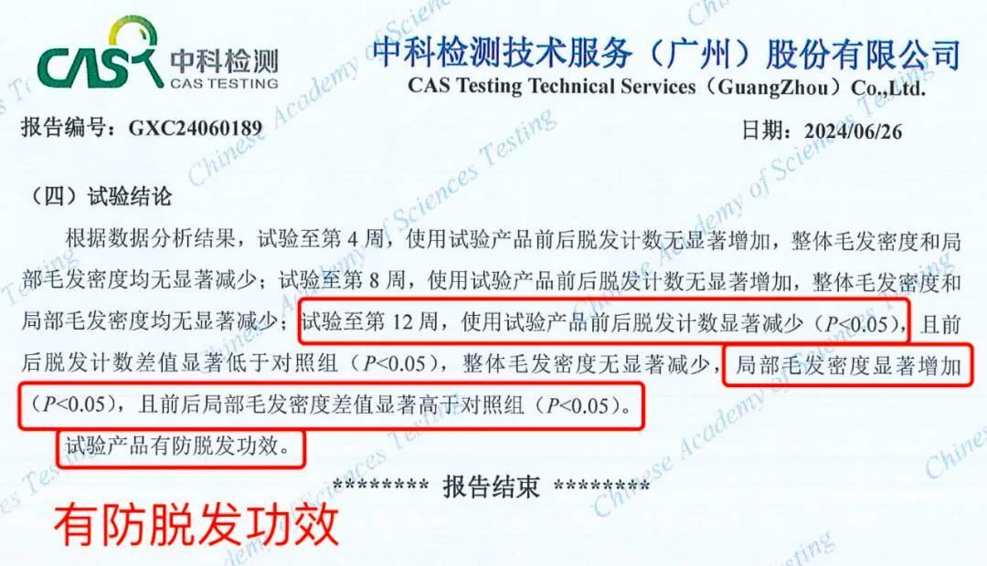 人體功效報告也顯示:相比對照組,受試者掉髮8周減少16.2%,12周減少22%,12周個別人羣掉髮可減少71%,而且用得越久,效果越好。