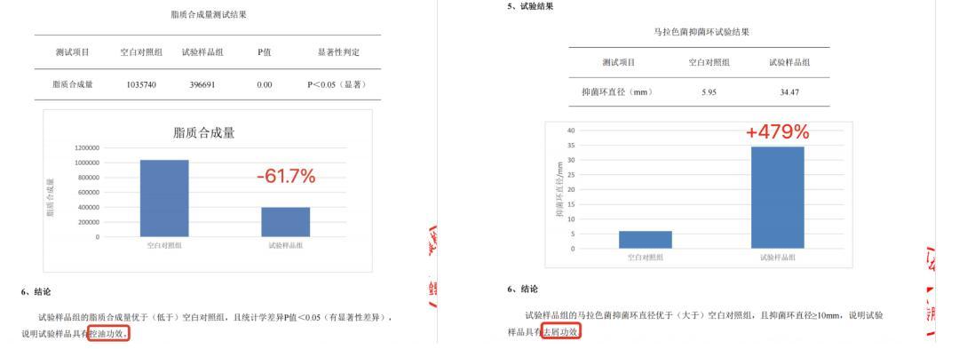在產品功效測試報告中,用過這瓶洗髮水後,油脂分泌量直降61.7%,抑菌環直徑提升479%,控油去屑效果明顯