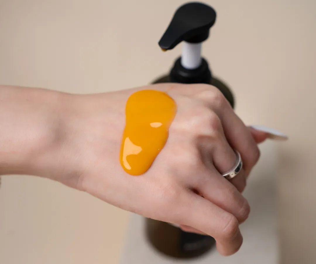 擠出來是明豔的薑黃色質地,聞起來是植物的清新感。