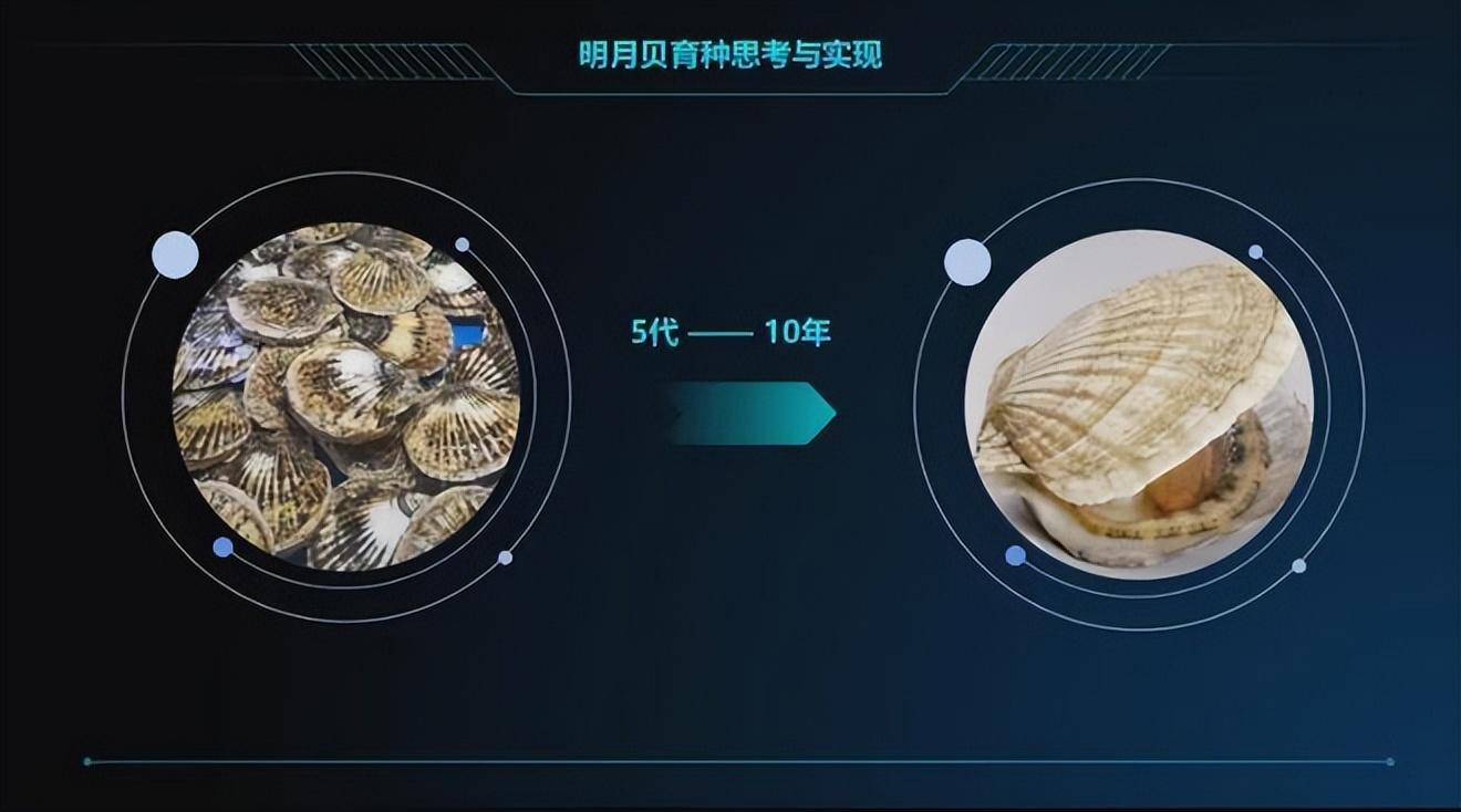 “明月貝”作爲蝦夷扇貝的新品種,是2018年大連海洋大學經過羣體選育培養的經全國水產原種和良種審定委員會審定獲批的水產新品種(GS-01-010-2017)。圖片來源於郝振林PPT