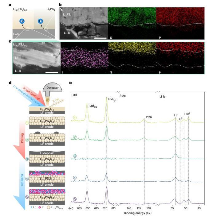 簡單說,就是讓電池裏的一種“碘化物離子”像小工一樣,在電池工作時主動跑到有空隙的地方,和鋰離子結合,形成一層軟乎乎的緩衝層。這種緩衝層可以跟着鋰金屬的鼓脹和收縮調整形狀,形成“智能彈性保護墊”,把空隙都堵得嚴嚴實實,這樣就不用擔心電池通道被擋、出現內部裂紋了。