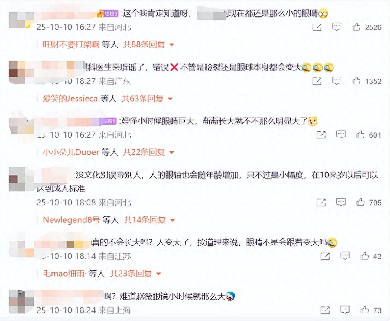 然而在評論區卻出現了很多爭論,有網友贊同此觀點,覺得“難怪小時候眼睛巨大,漸漸長大後就不那麼明顯大了”;但也有不少網友認爲此觀點不對。那麼,真相到底是怎樣的?