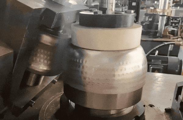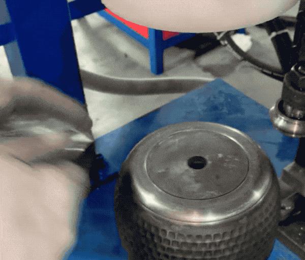 把此時還杯壁光滑的金屬杯套在做了錘紋的模具上,靠機器硬壓着過一遍紋理,出來的就是凹凸有致的錘紋效果了。雖然不是真的捶打而出,沒有原版紋理的精雕細琢感,倒也模仿出了一個氛圍感!