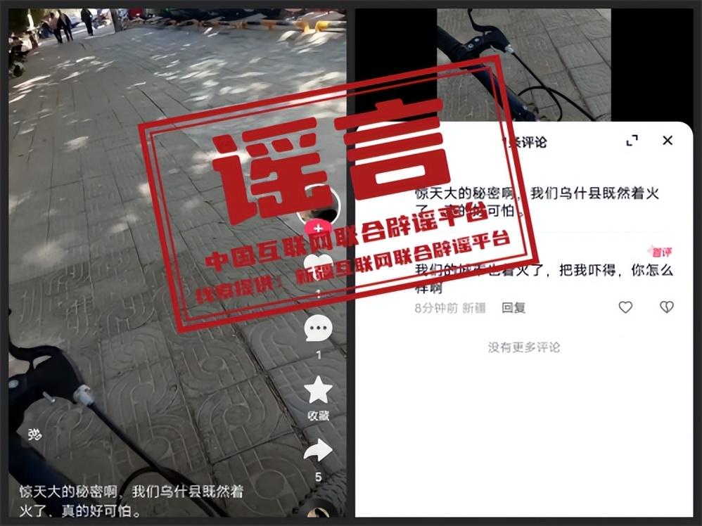 真相:近日,有新疆網民在互聯網平臺發佈“驚天大祕密,我們烏什縣着火了,真的好可怕”的視頻,引發社會關注。經當地消防救援大隊覈實:10月9日至13日期間,未接到羣衆關於火災事故報警,也未出動消防救援人員進行火災事故處置。視頻內容爲不實信息,屬於謠言。網信部門提醒廣大網民不造謠、不信謠、不傳謠,一切信息請以官方發佈爲準。(來源:“新疆網絡闢謠”微信公衆號)