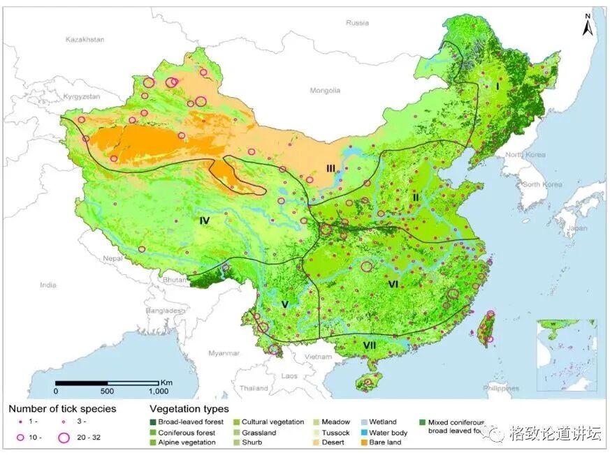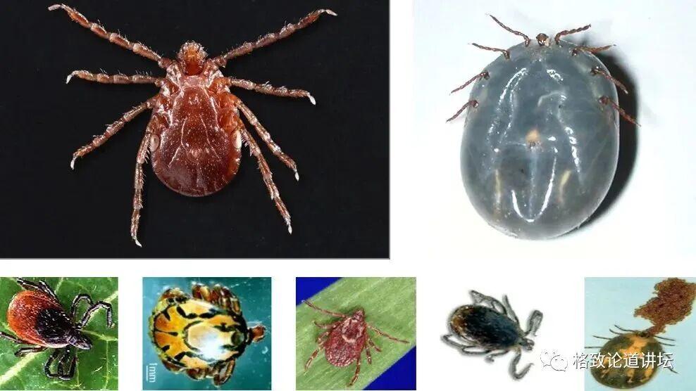 我們可以看到地圖上這些紅點,這是蜱蟲在我國的分佈。實際上據統計在1000多個縣裏面有120多種蜱蟲,分別屬於9個屬。也就是說,不管是大漠、高原還是非常偏遠的小島,都有它們的身影。