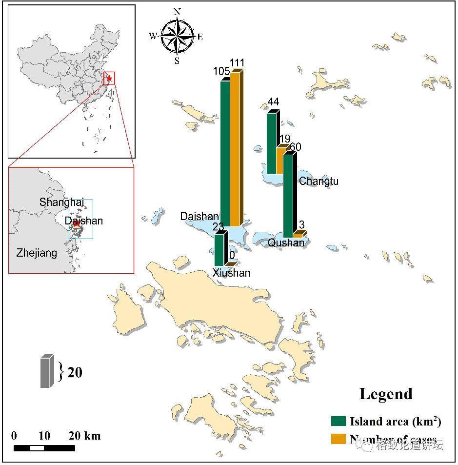 我們的故事開始於浙江省舟山市一個叫岱山縣的羣島,這個地方是浙江發熱伴最嚴重的地方。我們去調查的時候跟當地疾控的同志們交流,發現有一個島叫秀山島,它的植被、人口密度跟周邊的島基本上一樣,但是它就沒有病例,所以以前的專家都沒有去過這個島。