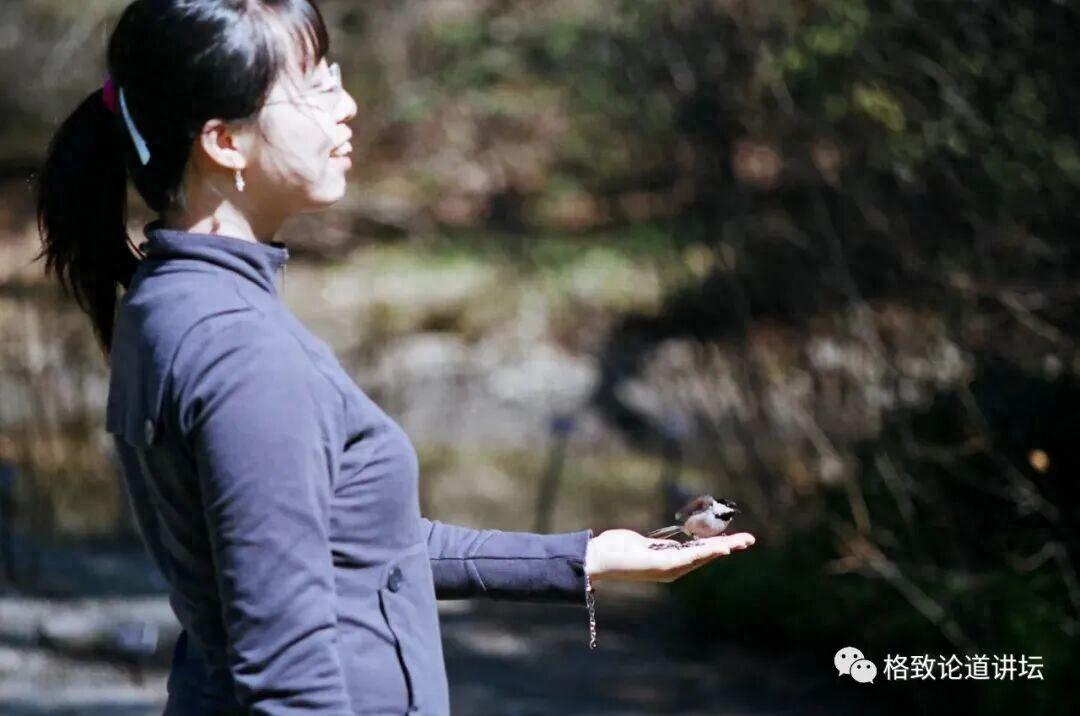 我大概15年前在美國工作學習過一段時間,當時我非常羨慕當地的生態環境,野生動物很多,人和動物之間距離也非常近。像我們經常去小公園喂小鳥,在手裏面放幾顆瓜子,小鳥就會到你手裏來喫瓜子。大家可以看到照片裏的這種小鳥,很漂亮,叫黑頭山雀。