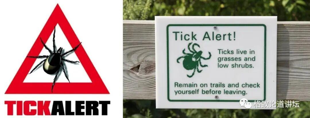 但是我們也發現,當地很多公園都有這個標誌——小心蜱蟲。因爲在美國蜱蟲非常多,而且很多會攜帶一些傳染病,像萊姆病,導致那邊萊姆病的病例非常多。