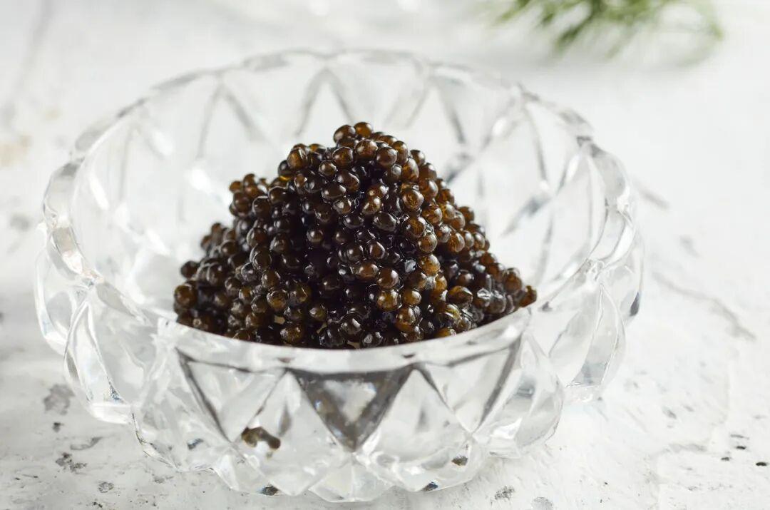 最著名的魚子美食,莫過於西餐中以“高大上”著稱的魚子醬,最昂貴的黑魚子醬是用鱘魚的魚卵在高濃度的鹽水中浸泡製成,有“黑色的金子”之稱,還誕生了一套看起來很有儀式感的食用程序。