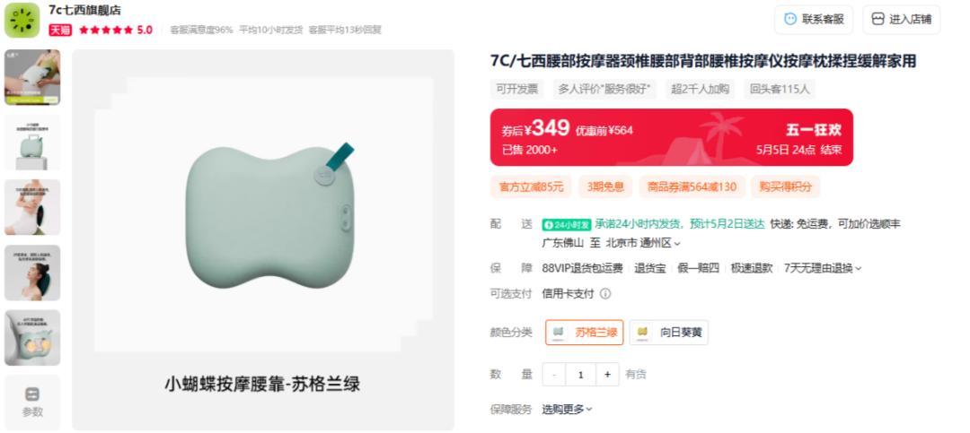 七西小蝴蝶按摩腰靠團購價:299元前30名下單享七西雲煙眼罩一個