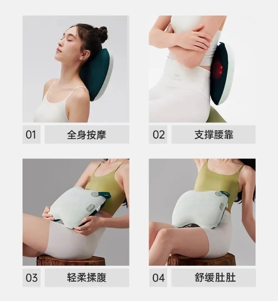可以當辦公椅的腰靠、可以做腰部按摩,還可以隨意替換位置按摩,比如 斜方肌、肩頸、腿部......渾身痠痛都可以找它!