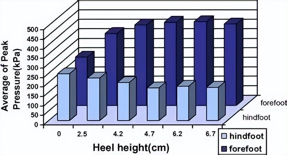 正常行走時,足底壓力均勻分佈在前掌、中足和後跟,增高鞋墊會顯著增加前足壓力。