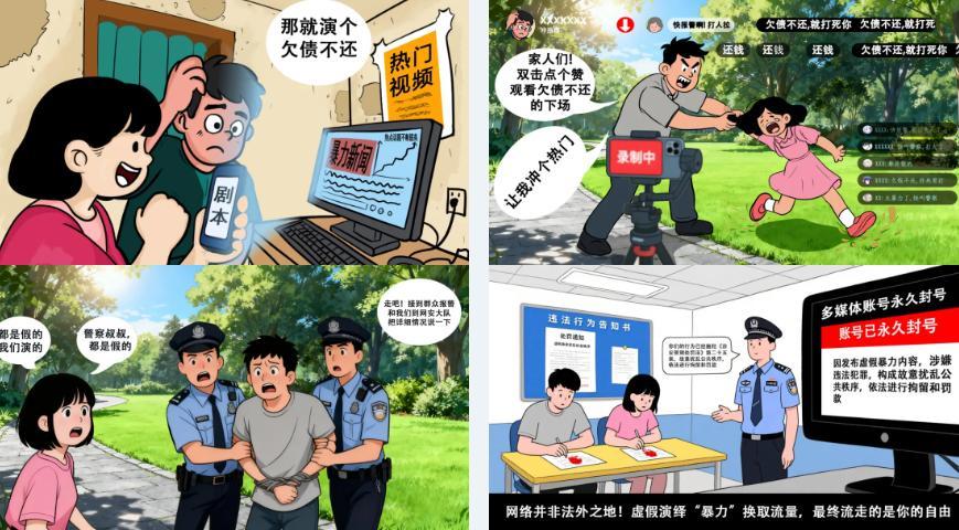 經查,爲推銷所謂“優質低價”、“限時秒殺”商品,當地兩名網絡主播在直播和短視頻中不標註“演繹”或“虛構”,演繹各種“暴力衝突”劇本內容,刻意在網上製造緊張衝突氛圍,博取網民同情並誘導購買商品,引發大量網民關注和討論,造成部分羣衆對當地社會治安誤解。