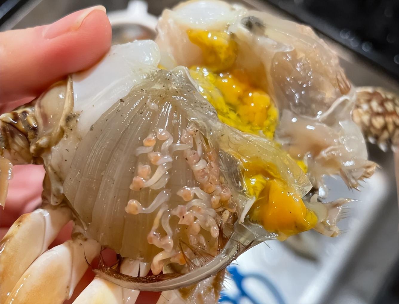 有網友打開梭子蟹後,發現內部有很多不明生物在蠕動,認爲梭子蟹裏有很多寄生蟲,不能喫。