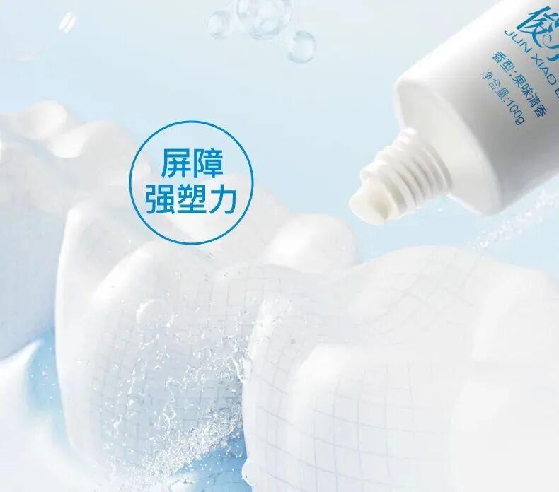 而俊小白修護牙膏是通過主動吸附色素來亮潔,納·米尺度的羥基磷灰石顆粒,更溫和清潔,不傷牙,一家老少都能安心用!