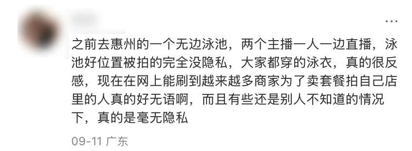 一些更過分的主播,甚至會將鏡頭對準早晚高峯的地鐵站,與直播間的觀衆一塊兒,肆意嘲弄着鏡頭前每一位擠地鐵的打工人。即便是泳池、溫泉與水上樂園等場合,遊客依然會在毫不知情的情況下,被直播間觀衆評價身材好壞。