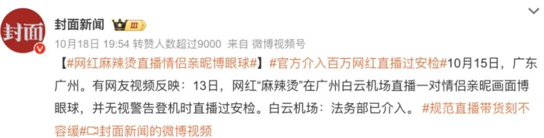 2024年10月13日,一位名叫“麻辣燙”的網紅走進了廣州白雲機場,面對這個特殊的場所,她彷彿嗅到了流量的芬芳,決定打開直播間,記錄自己乘機的過程。
