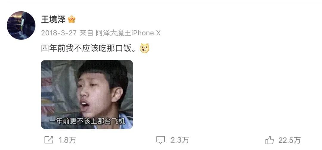 “真香” 表情包爆火後,王境澤在社交平臺回應丨 @王境澤