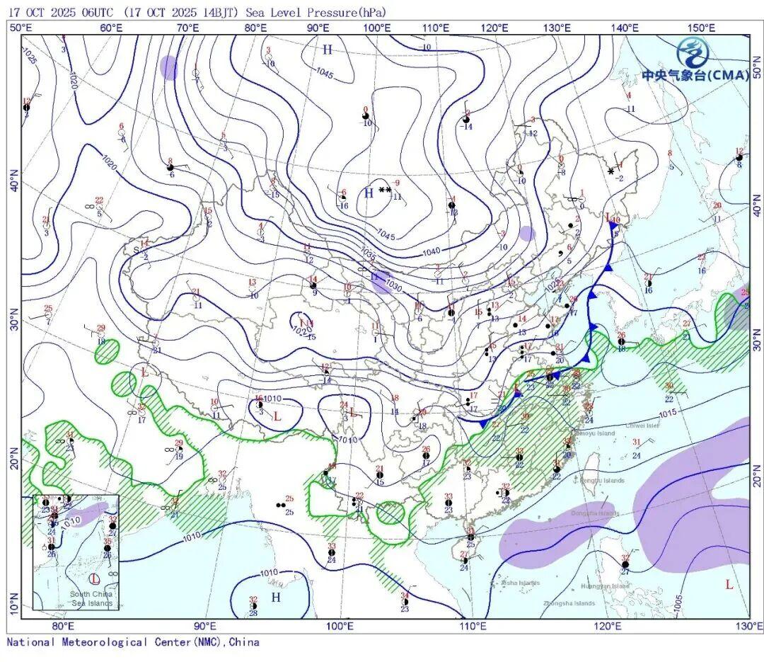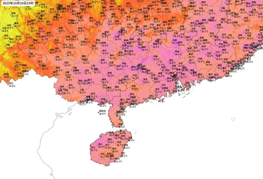 而對南方來說,要接受北方已經入冬的事實,可能稍微有一點困難。因爲就在10月17日,在副熱帶高壓的最後一搏之下,南方又出現了大範圍炎熱天氣,其中廣東、江西、福建又出現高溫天氣,廣東花都35.4度全國第一。在長期炎熱之下,南方的朋友已經習慣了夏天,不僅不習慣冬天,甚至還不習慣秋天。