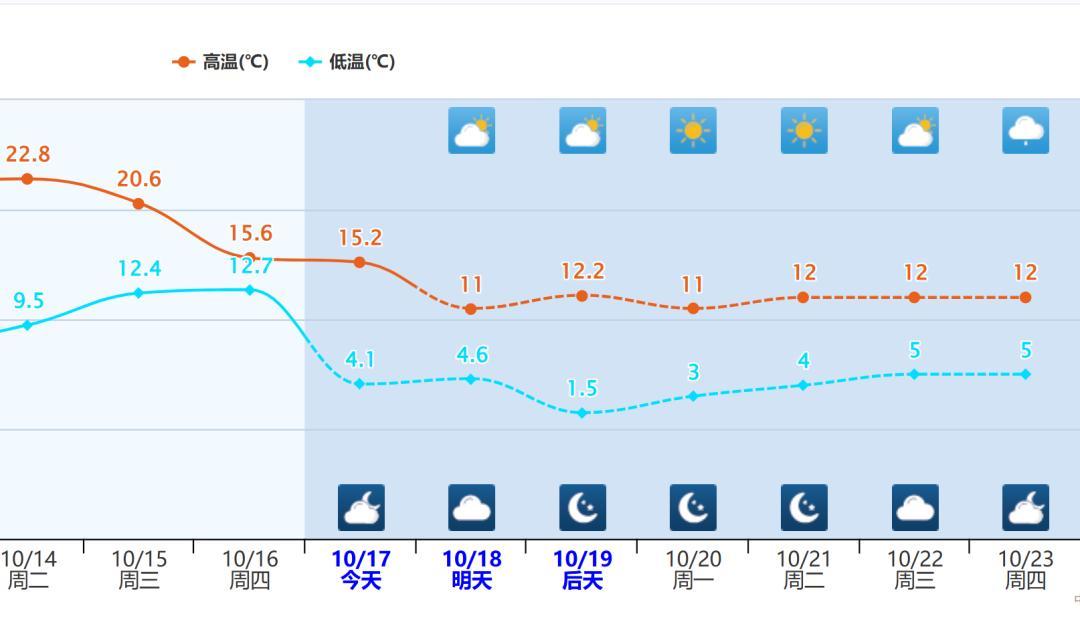 而與此同時,強大的冷空氣主力仍然動作較慢,10月17日午後還在長城以北,但它的冷力十足,河北康保14點只有-3.6度。可以預料,它徹底下來之後,華北平原將會非常寒冷,北京已經發布寒潮預警,預計10月18日前後,北京等地就將和秋天告別,正式進入寒冷的冬天。