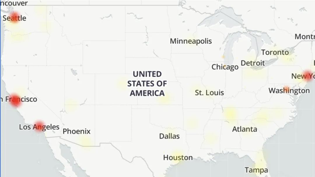 美國幾大城市都在報告問題|圖源:Down Dectector
