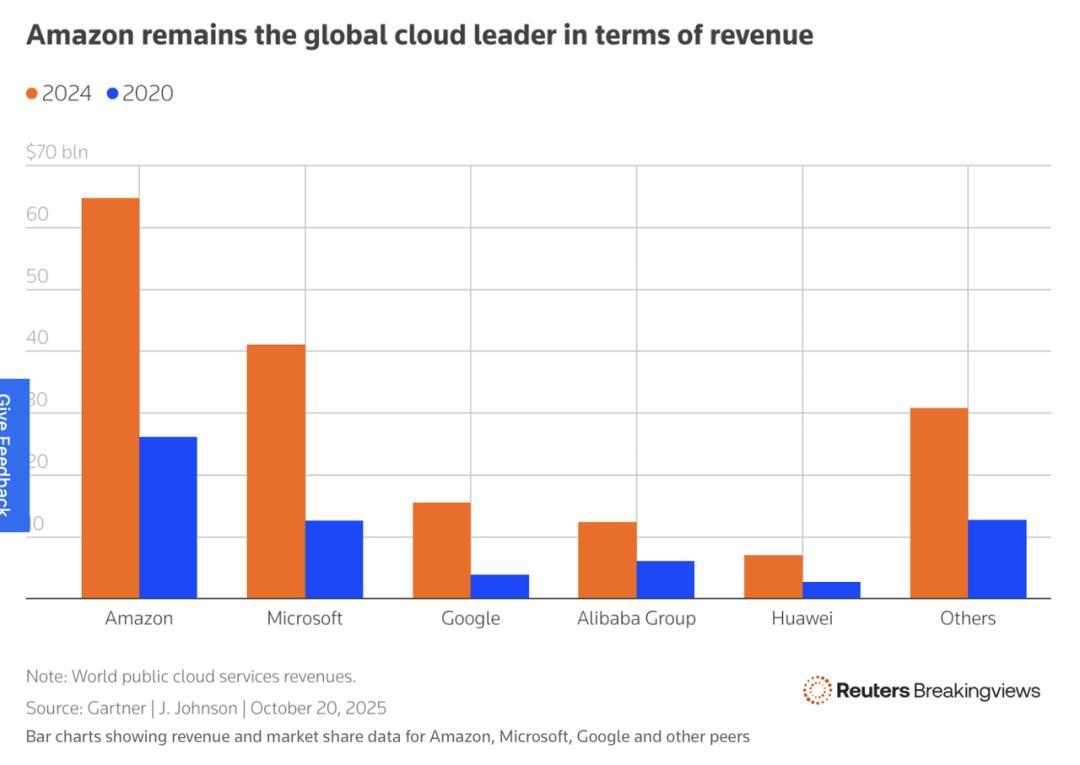 亞馬遜在雲計算領域的份額|圖源:路透社