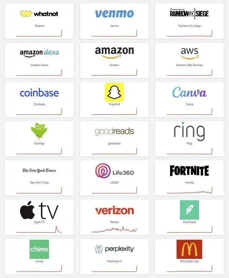 Venmo(PayPal 旗下的支付 app)宕機了,讓用戶無法付款和轉賬,小企業主欲哭無淚;Coinbase 加密交易所也中招,用戶登錄卡頓,交易訂單堆積如山;Robinhood 和 Webull 等股票 app 全線崩潰,投資者眼睜睜看着市場波動卻下不了單;同時,星巴克、麥當勞的 app 也出現了訪問問題。