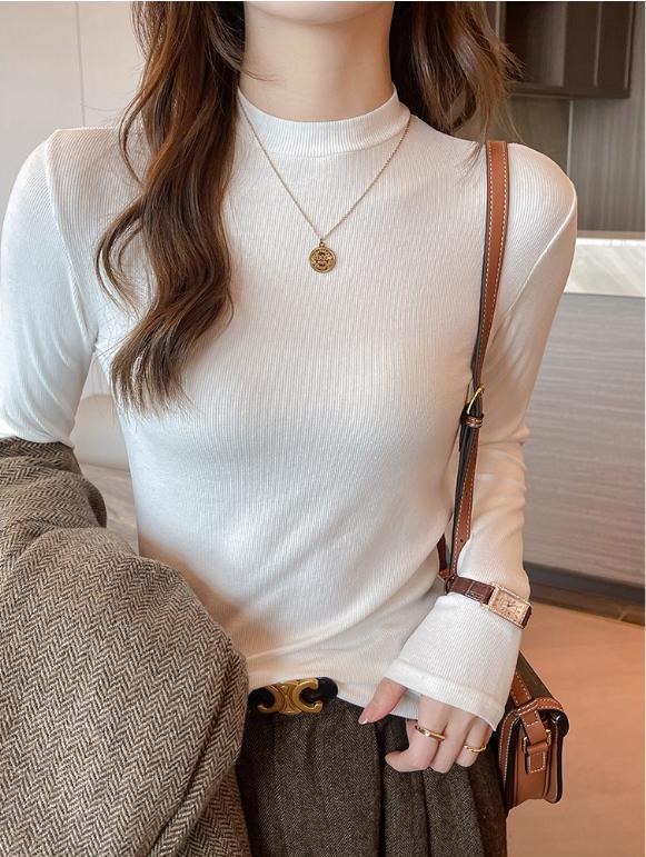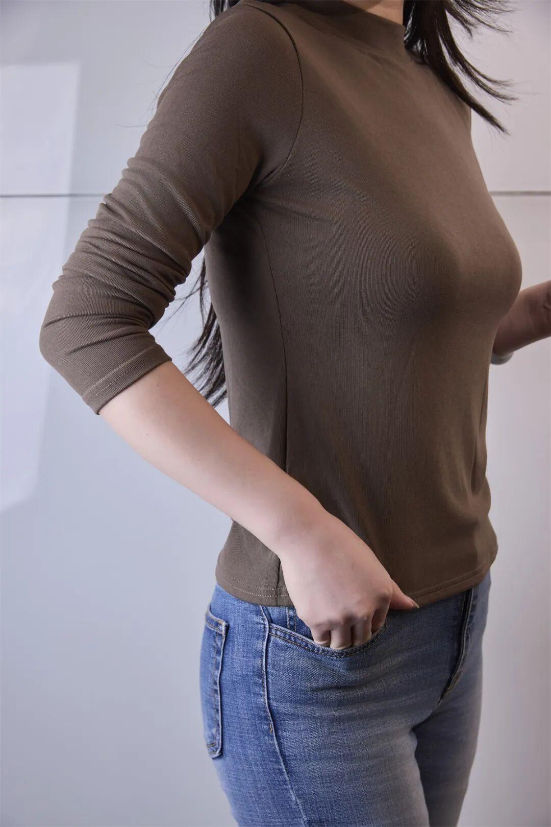 半高領、微落肩的設計,立體修身修飾粗脖子,不會太緊暴露缺點,反而剛好遮住局部贅肉,輕鬆打造“直角肩”~
