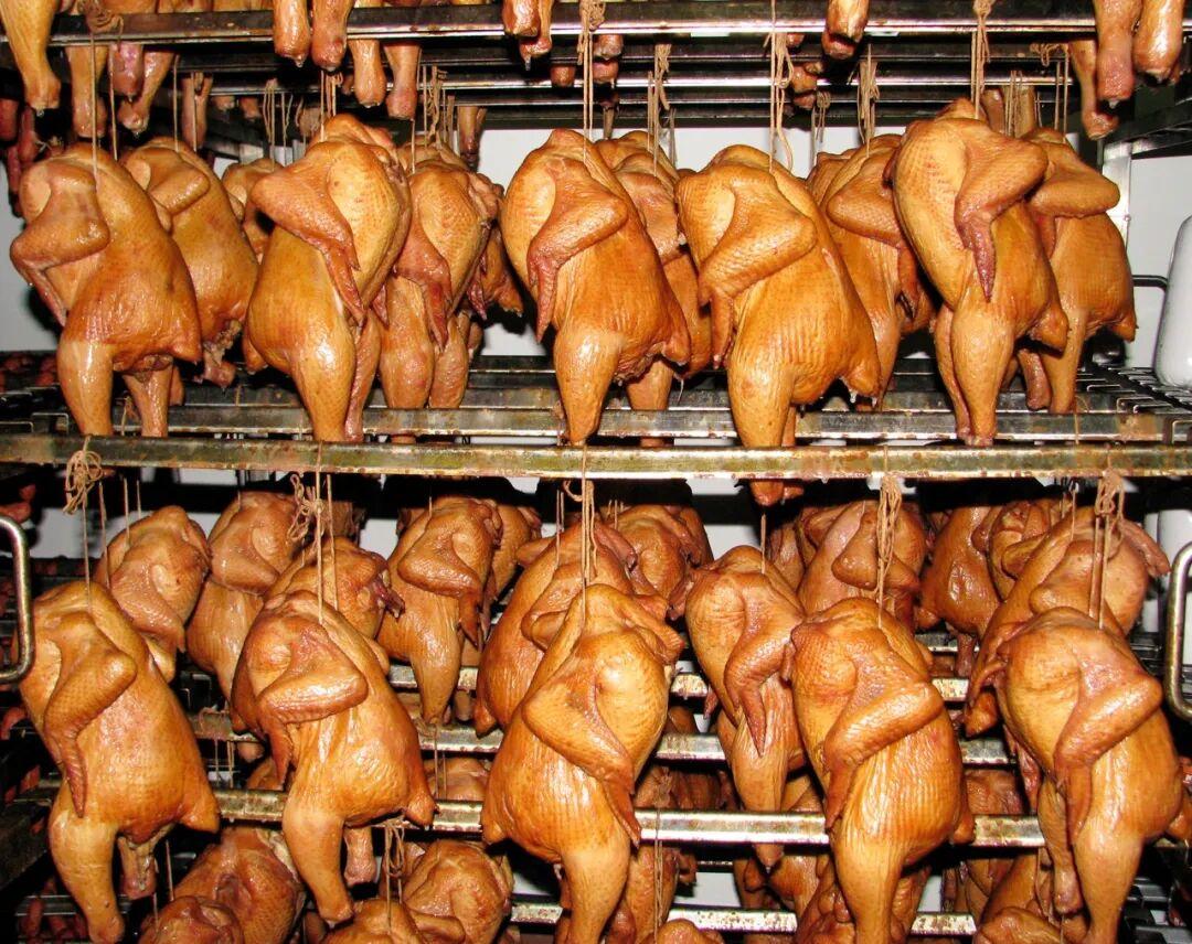 最後,連製作烤雞這個步驟,也能全靠標準化、工業化的生產來完成。雞從屠宰場出來,可以通過流水線進行自動化清洗,多道水淋或氣泡清潔比人工洗得更快捷和乾淨。