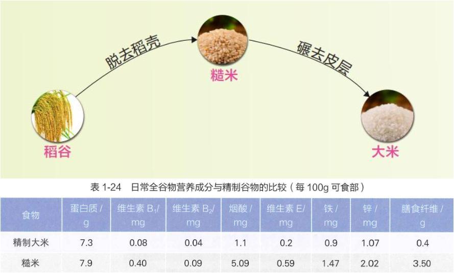 在古代,農業和食品加工技術有限,人們食用的穀物大多是隻去除了最外層穀殼的“糙米”或“全穀物”,這些穀物保留了富含膳食纖維、B 族維生素和礦物質的麩皮和胚芽。
