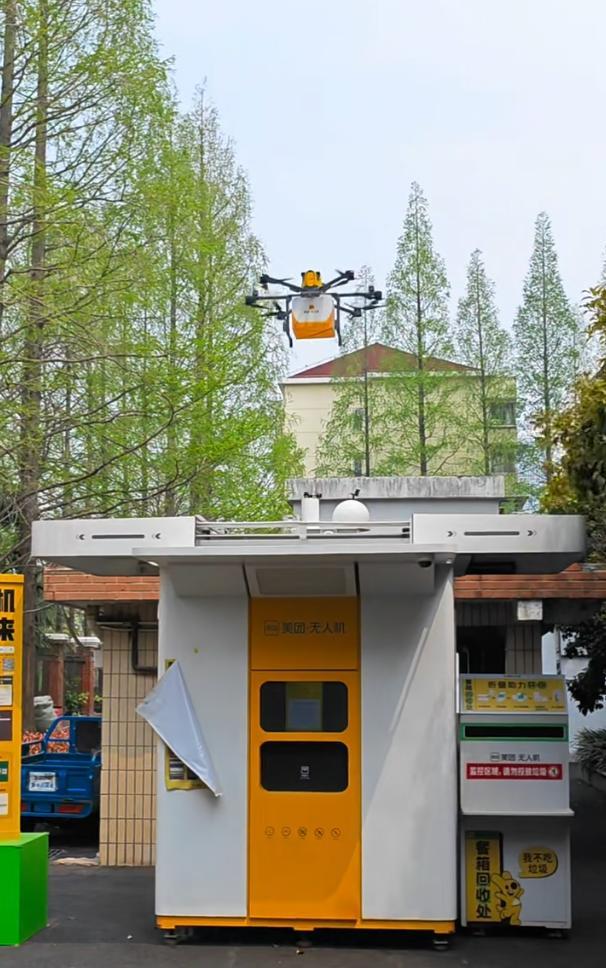 無人機外賣的操作方法和一般外賣不同:得先在美團搜“美團無人機”,收貨地址選擇“復旦大學邯鄲校區東區宿舍”無人機空投櫃。下單後,無人機會從合生匯起飛,到宿舍門口的空投櫃降落。學生從無人機的餐盒裏取餐後,再把餐盒放回空投櫃,無人機就會自己返回。據復旦學生測試,無人機1.5km距離飛行只需要5分鐘,空投配送費不漲價,“6塊錢的拼好飯也能坐無人機”。