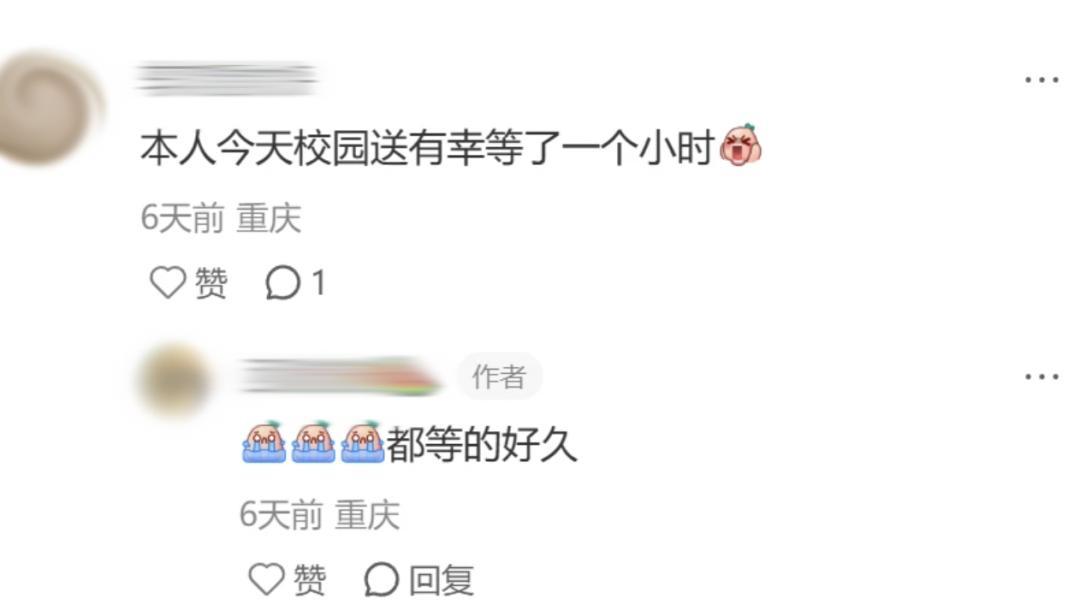 學生們普遍發現,校生活的校園送“奇慢無比”。不知道是騎手運力不足還是平臺管理欠缺,有學生說自己“11點點的外賣,下午三點到”。餓急了的學生去校生活後臺留言,爲什麼外賣一個小時還沒配送?答覆是,您不想等也可以取消。在西南大學讀書的小蔣說,校生活平臺入駐前,送進學校的外賣偶爾也會超時,但不會這麼頻繁、遲到這麼久。