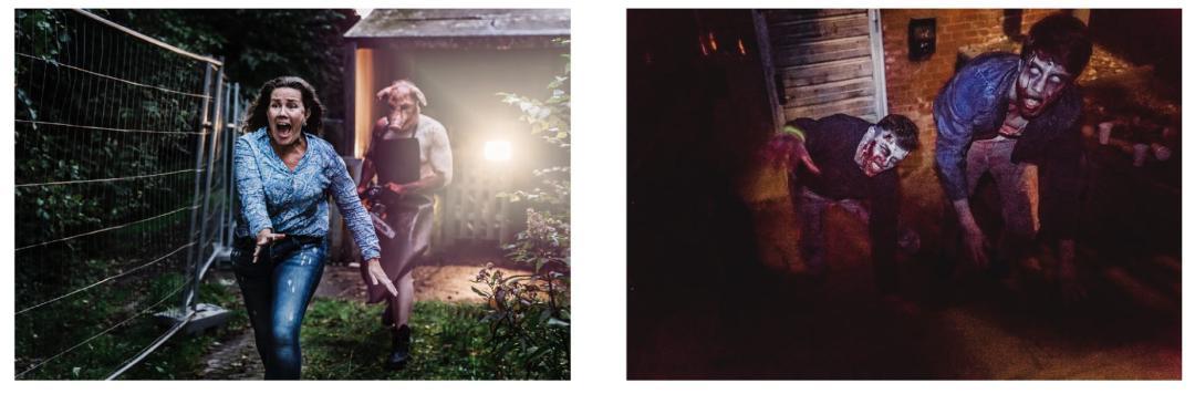 反烏托邦鬼屋中的最恐怖場景:左-豬頭屠夫 右-喪屍