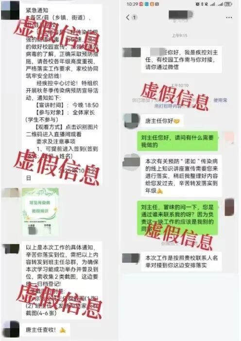 詳情:近日,我們注意到有不法分子假冒疾控中心工作人員,以電話、電子郵件等方式聯繫我市一些社區、街道、學校及家長,要求轉發其提供的《關於組織觀看“秋冬季傳染病預防宣導”的通知》等直播鏈接或二維碼,並要求組織轄區學生及家長觀看,從事可疑詐騙活動。請廣大市民提高警惕,謹防上當受騙。