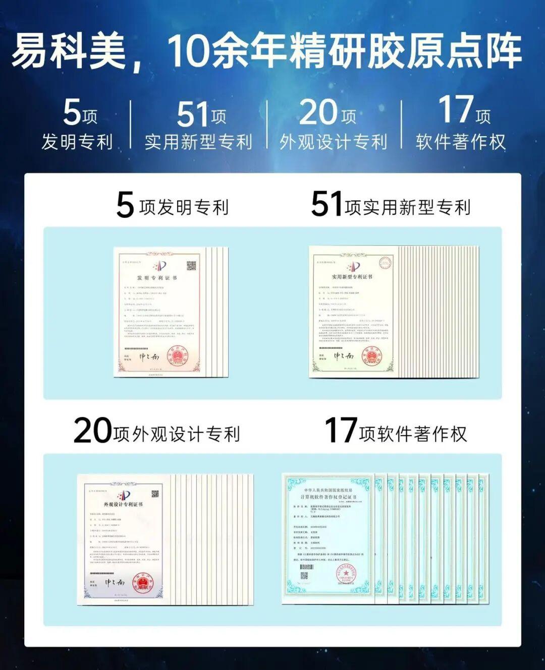 而易科美背靠波科激光和博溪生物兩個行業研發大佬,已經在家用激光美膚科技領域埋頭苦幹了10餘年,還取得了多項知識產權及功效認證。