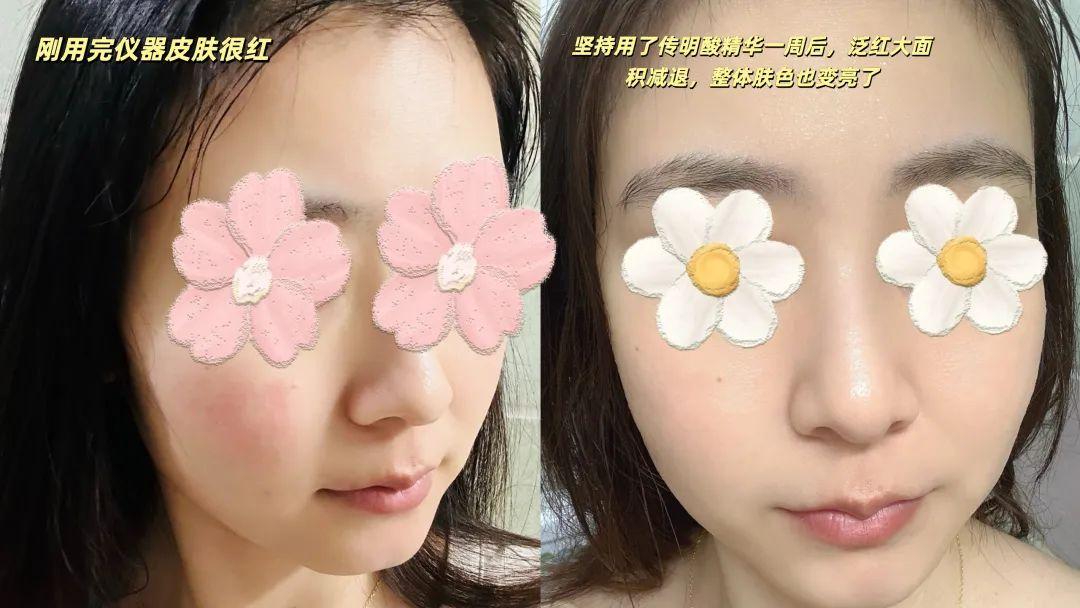 但早晚堅持用這支精華,白天防曬霜前打底,晚上潔面後直接塗,量稍微大一點,帶着脖子一起,不僅泛紅減少了很多,膚色也看起來更加透亮、均勻後續再用儀器時也不會輕易泛紅,有種皮膚真的變厚的感覺,非常滿意~~