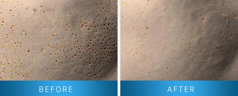 毛孔總體積 -54.4% ↓毛孔總面積-52.22% ↓毛孔數量-40.88% ↓