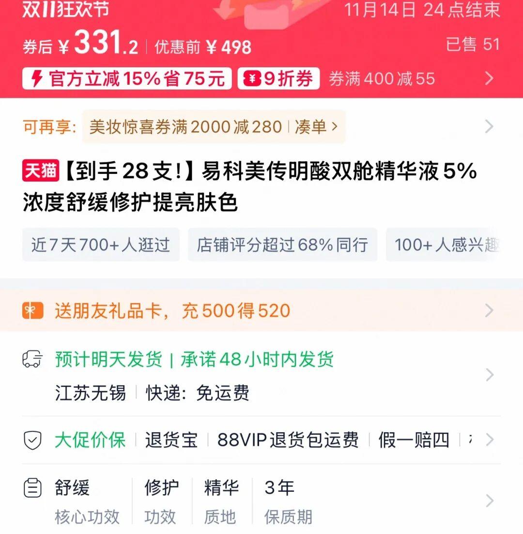 現在大促活動價也要331元到手28支
