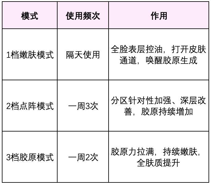 我覺得分區和檔位調節很方便!它有前額、眼尾、臉頰、脣上、下頜5大智能分區,還有3大進階煥膚模式可調(嫩膚/點陣/膠原)。