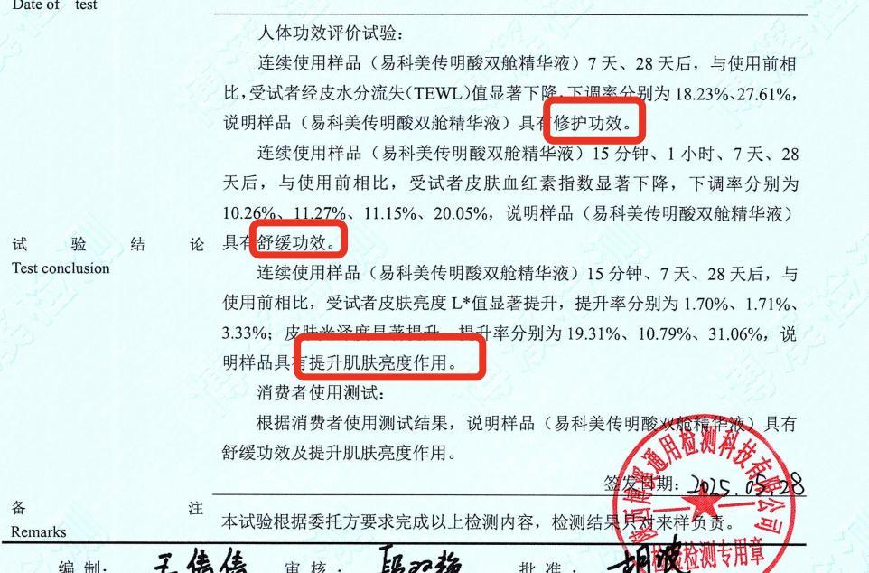 光有期刊論文還不夠,來看真實的人體功效試驗報告。