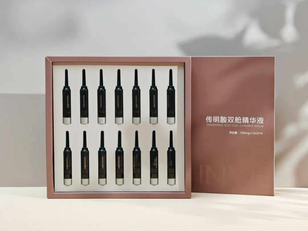 今天還給大家準備了易科美的重磅新品——5%傳明酸雙艙精華液,修護舒緩的同時,還能防止反黑,提亮和均勻膚色一絕!非常適合使用儀器和做完項目後使用!
