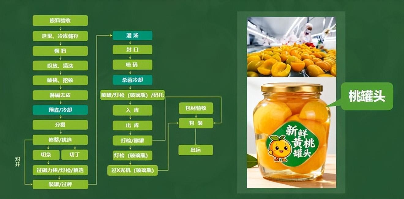 真空封罐機抽走罐內頂隙的所有空氣並瞬間密封,爲黃桃創造無菌、無氧的保存環境;隨後進行巴氏殺菌,通過精準控制溫度和時間,鈍化酶活性、殺滅致病菌與腐敗菌,無需添加人工防腐劑就能達到商業無菌標準。殺菌後的罐頭迅速冷卻,經過嚴格的質量檢驗後貼標出廠,確保每一罐都品質合格。