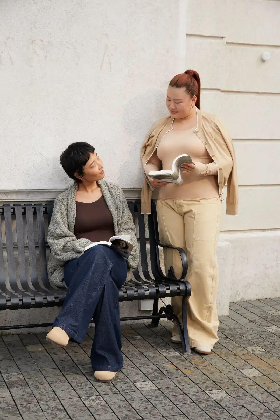 褲子也是一樣的高彈,能裝得下不同體型的姐妹!我們試了,不僅腰部高彈又舒適,而且褲腿也可以有很大拉伸度。
